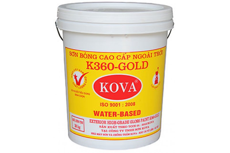 K360-Gold có độ phủ tốt, màng sơn nhẵn, bóng đẹp nên dễ chùi rửa và làm sạch, dùng để sơn phủ sau khi đã làm phẳng tường bằng Mattit KOVA MT-N hoặc Bột bả KOVA MB ngoài trời. Có thể lăn trực tiếp khi tường đã khô và được lót bằng sơn kháng kiềm K209-Gold hoặc một loại sơn trắng ngoài trời của KOVA.